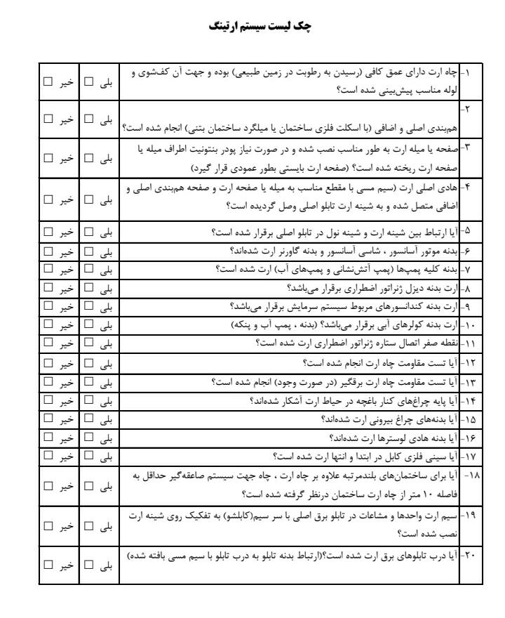 لیست تجهیزات مورد نیاز جهت اجرای صاعقه گیر الکترونیکی (چک لیست)